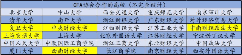 目前,国内多所财经类院校均引入CFA课程,以此来提高教学质量,拓宽学生国际视野以及专业知识面。在研究生择校阶段,CFA+FRM班的学生可优先考虑CFA/FRM密切合作的高校。在研究生面试环节中,学生对于专业知识的阐释具有优势,且一定程度上也将会证明该生对研究生课程的胜任能力。